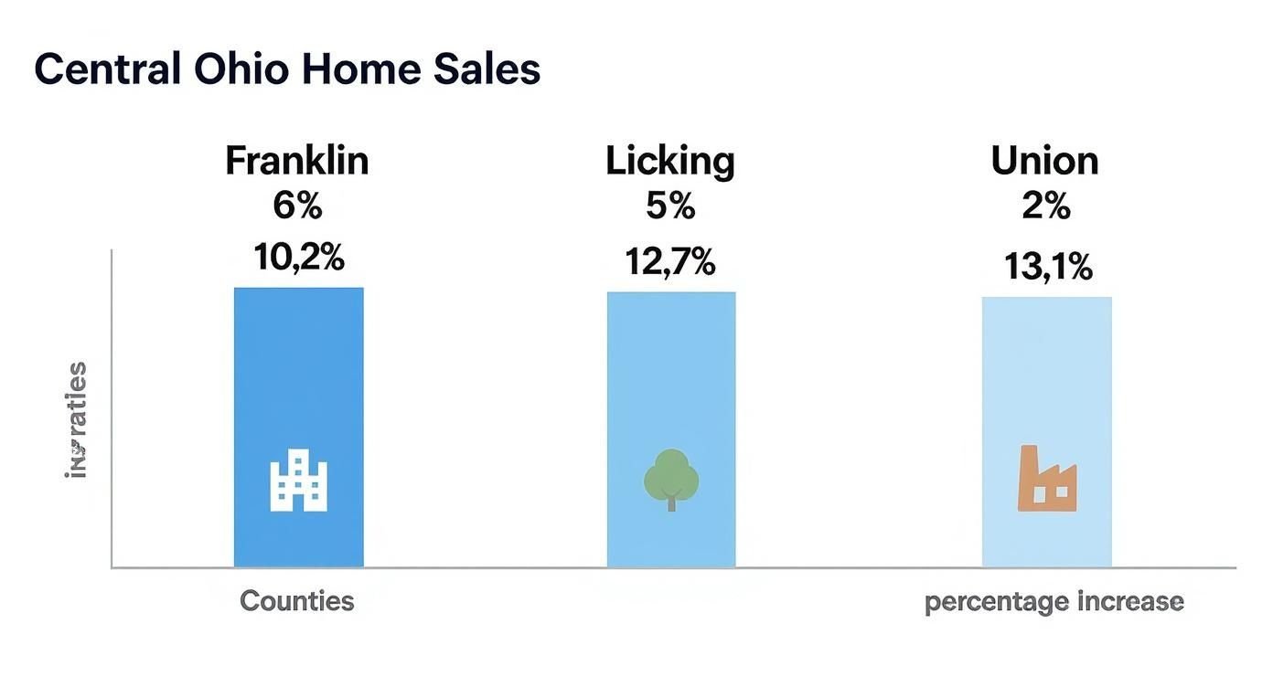Recent data show home sales rising 7.9% year-over-year, with standout growth in Licking (18.4%) and Union (19%) counties—both areas tied to industrial expansion.